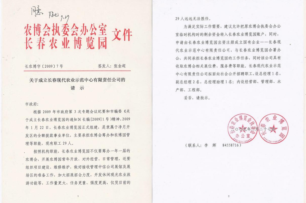 长春现代农业示范中心有限责任公司(简称示范中心)成立于2009年4月16日,与长春农博园合署办公,现有职工76人,共同承担农博园种养殖技术、日常运营维护及农博会招商招展、会议展览服务等工作。