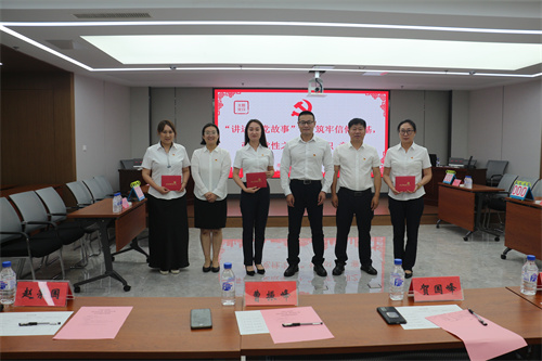 活动中,首先由7月份过政治生日的徐晓丹、闫佳美、田雨石三名党员同志,与大家分享了各自的入党故事。贺国峰、许伟、曹振峰为三位同志颁发了政治生日贺卡。“讲述入党故事”使每位党员从讲述故事的同志身上汲取到奋进力量,激发了全体党员践行入党誓词的信心和决心,坚定了理想信念,身体力行的去树立起一面面引领他人的旗帜。