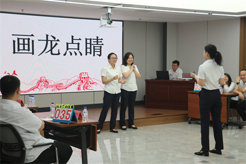 第二个环节——加分游戏。此环节设置了你划我猜游戏,选手们和评委团充分发挥团队精神,互相协作,争取加分机会。现场气氛愈发活跃,观众们也被游戏环节所吸引,积极参与互动,共同感受党的魅力。