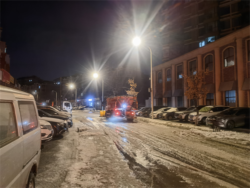 面对突发状况,环卫公司立即启动应急响应机制。m88asia城市运营公司总经理李志国、m88asia环卫公司总经理张博等同志迅速抵达现场,靠前指挥,紧急调配清雪车辆,撒布融雪剂进行除冰作业,工作人员不畏严寒,全力消除交通安全隐患,截止27日早8点,路面已恢复正常通行。